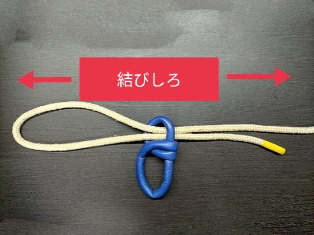 上の画像の通り、本格的に締め込む前に結び目の形を軽く決めます。